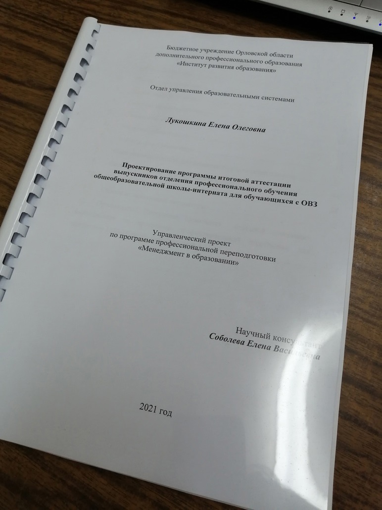 Тема управленческого проекта "Проектирование программы итоговой аттестации выпускников отделения профессионального обучения общеобразовательной школы-интерната для обучающихся с ОВЗ" выбрана не случайно, поскольку с 1 сентября 2021 года изменилась организация итоговой аттестации выпускников школы отделения профессионального обучения, предусматривающая реализацию совместного творческого проекта по двум профессиям - 18880 Столяр строительный и 15415 Овощевод.