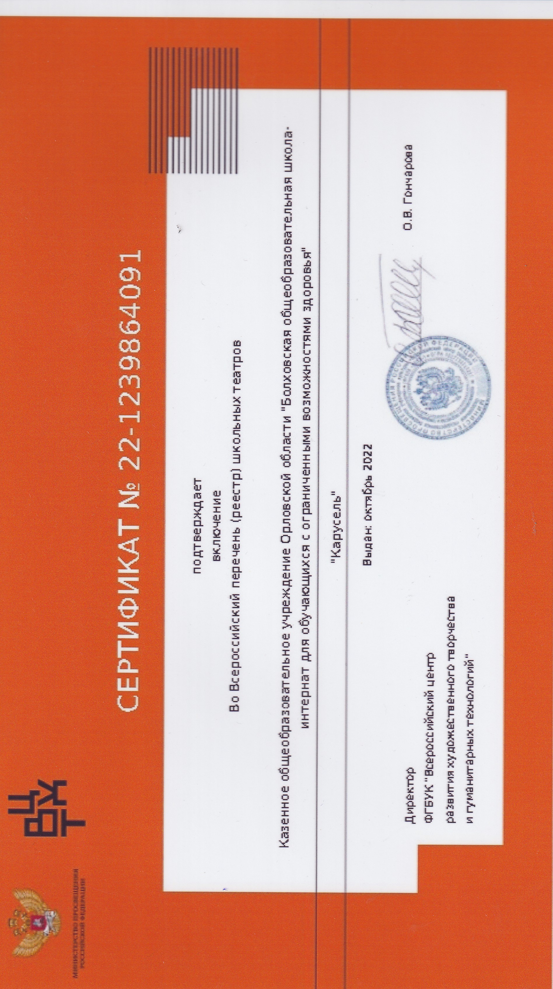 Сертификаты о включении во Всероссийский перечень (реестр) школьных театров