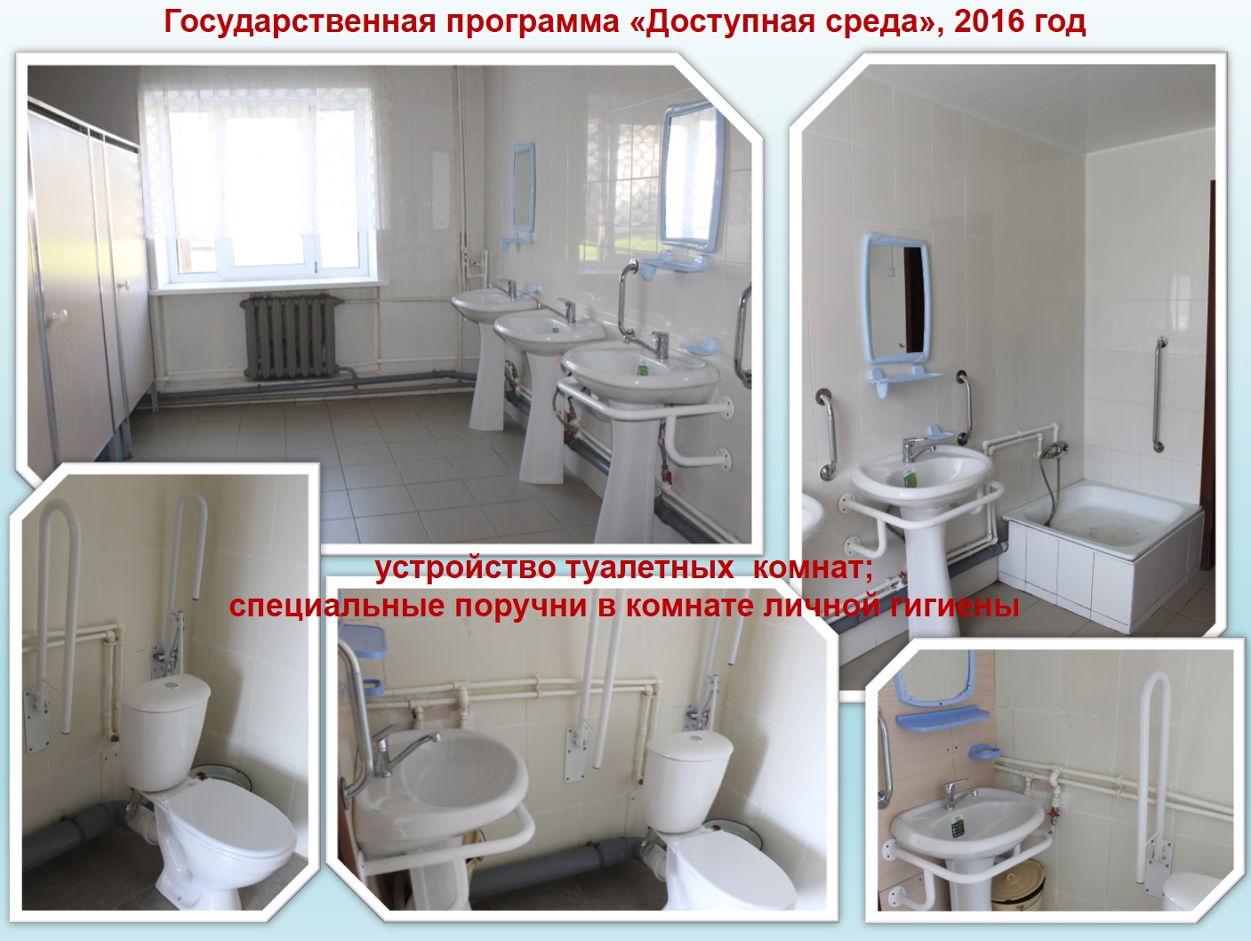 - устройство туалетных комнат; специальные поручни в комнате личной гигиены;